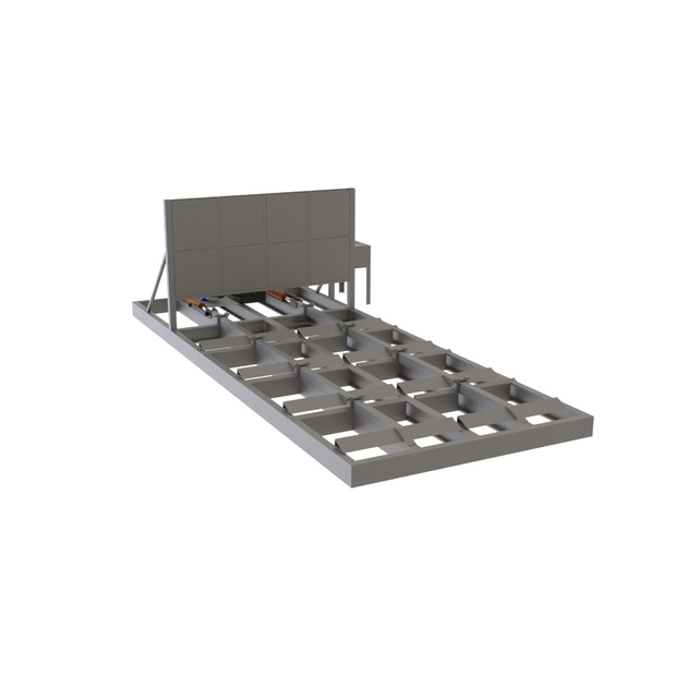 Предназначается для хранения и равномерной подачи используемого сырья в топку котла. Система подачи топлива представляет собой линейки, с закреплёнными по их длине скребками, и неподвижные направляющие. С помощью гидравлического цилиндра линейки приводятся в движение в обоих направлениях, при этом топливо разгружается со всей площади склада в поперечный скребковый транспортёр.